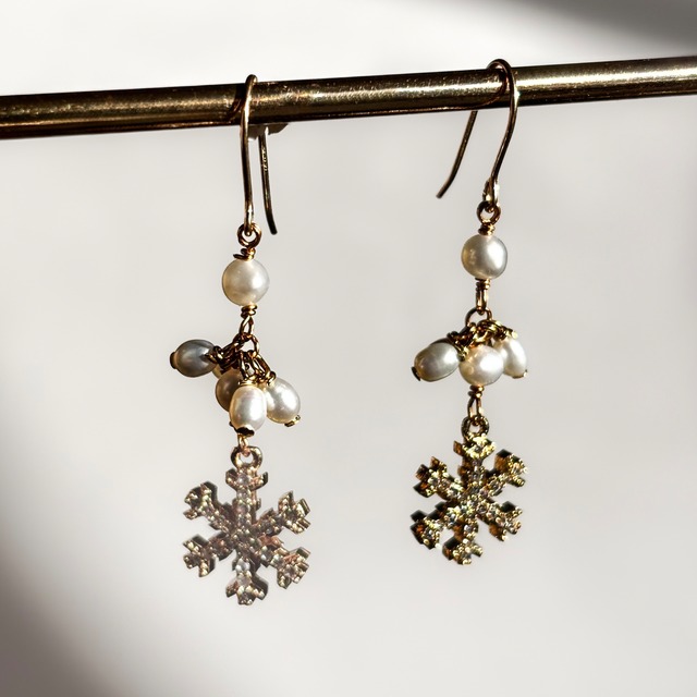 繊細な雪の結晶と淡水パールのピアス アレルギー対応 14kgf